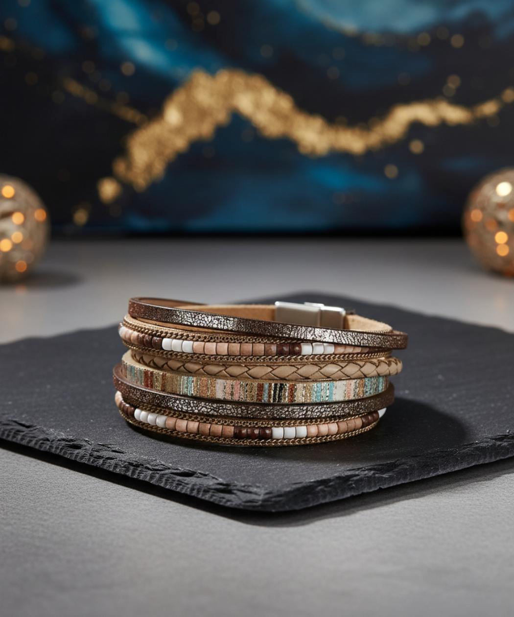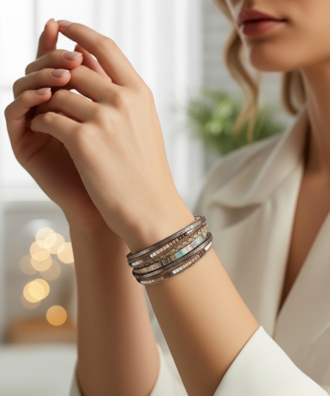 • Our bohemian style leather bracelet features multiple strands of leather cords combination in different texture, adorned with fiber synthetic leather. You can wear our wrap bracelet on different occasions, no matter shopping, working, party, dance or dating, this bracelet will attract a lot of attention, you’ll get more compliments